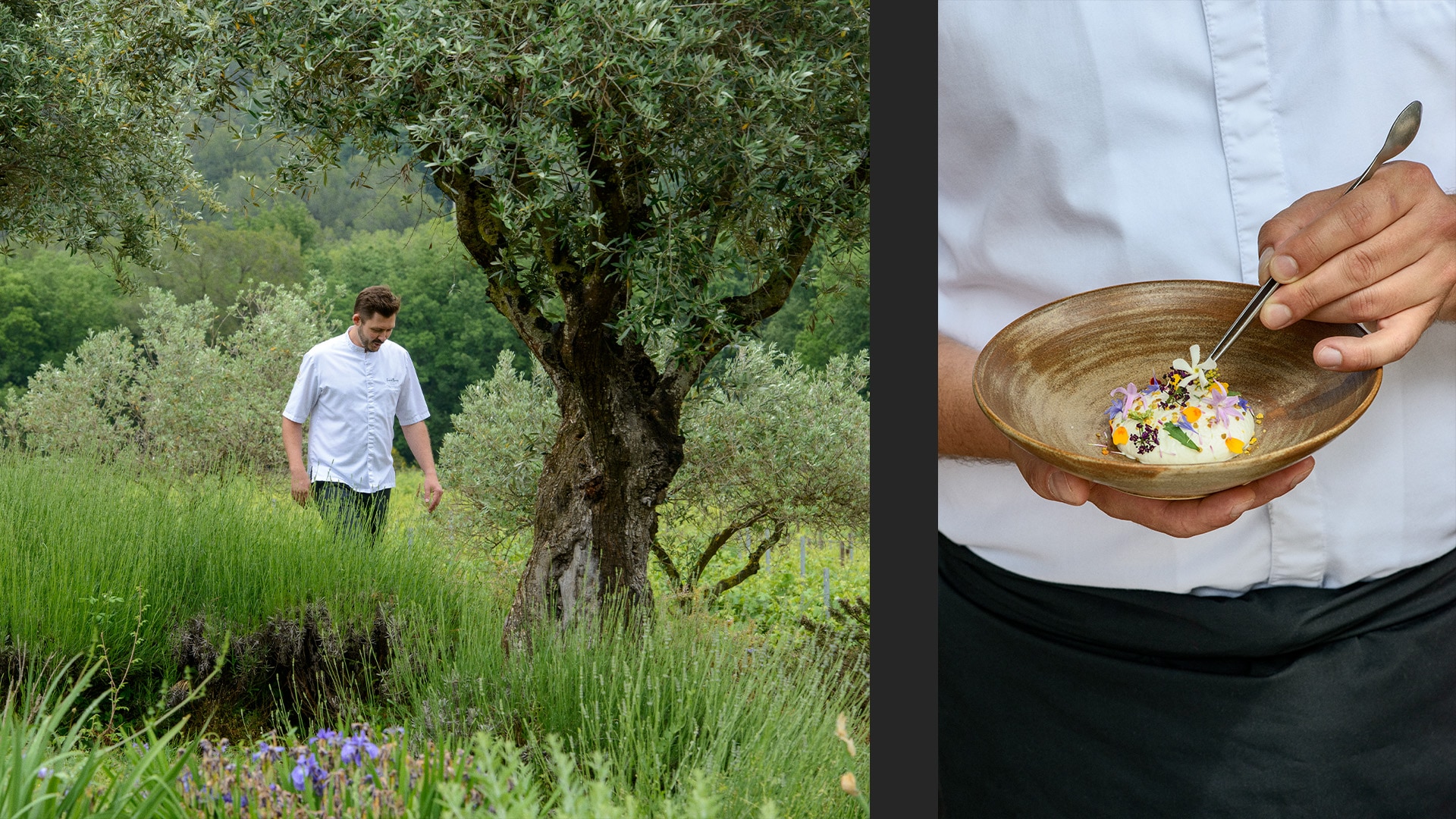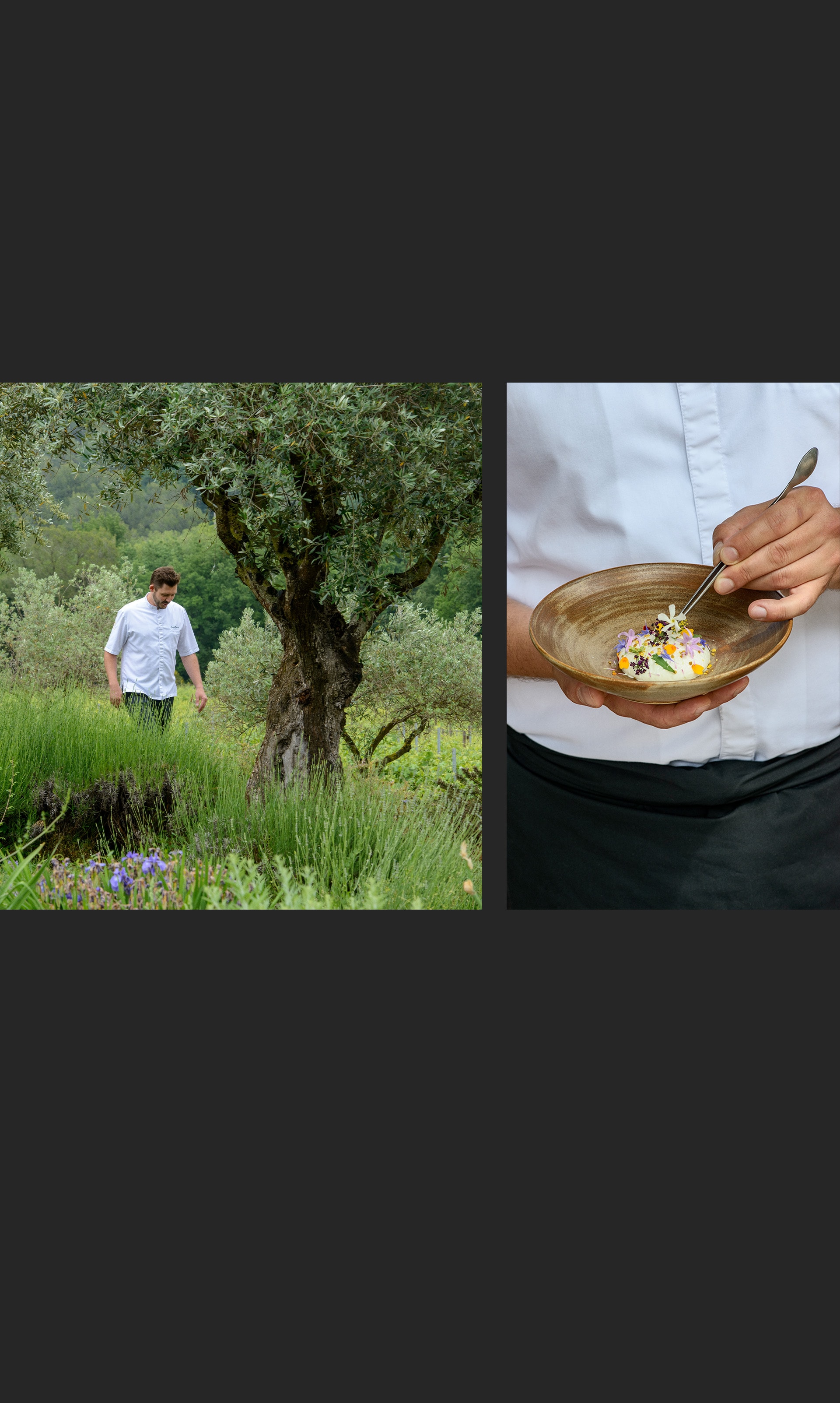 He expresses his talent and creativity in the dishes he creates, which are a tribute to the wealth of produce from the Provence region and, above all, from the hotel’s own 3,000-square-meter organically cultivated garden. “For a nature lover like me, Château de Berne is a limitless, rich and inspiring adventure playground. Having our own vegetable garden means we are able to work with the best nature has to offer – including tomatoes, leeks, carrots, spinach, zucchini and eggplant. And by using spices and seasonings like saffron pistils from our region or one of our homemade olive oils, we preserve the original flavors. But we can’t control nature, and nor do we want to, so we have to adapt our way of working.”
